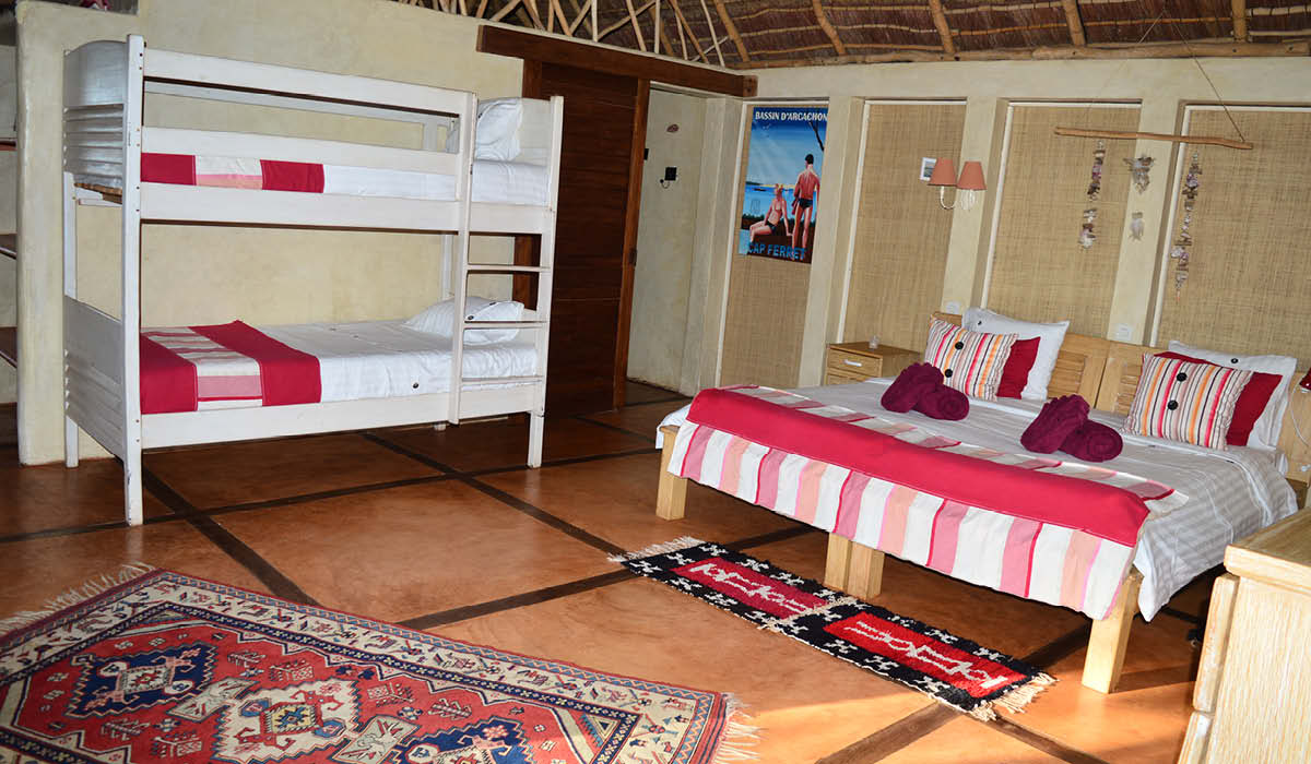 Ce bungalow dispose d’une passerelle communicante avec portillons respectifs avec le Bungalow Pyla. Ces portillons peuvent être ouverts en cas de groupe, famille ou amis.