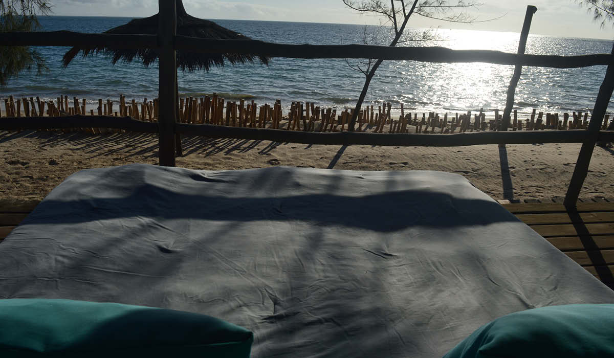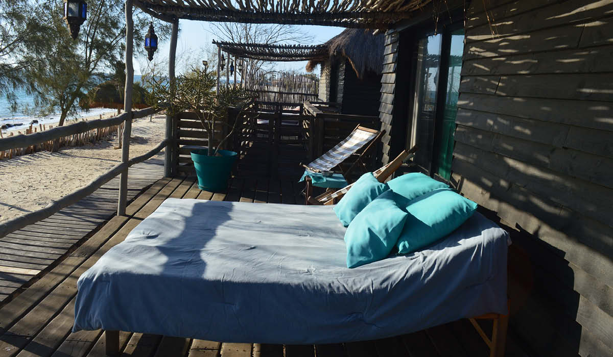 Une terrasse privée de 30m2 avec salon extérieur avec vue sur le lagon.