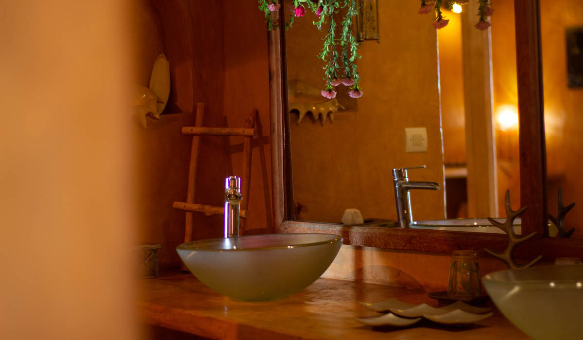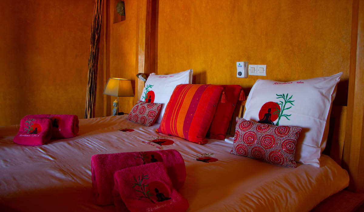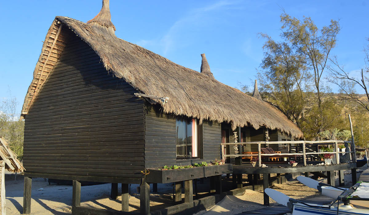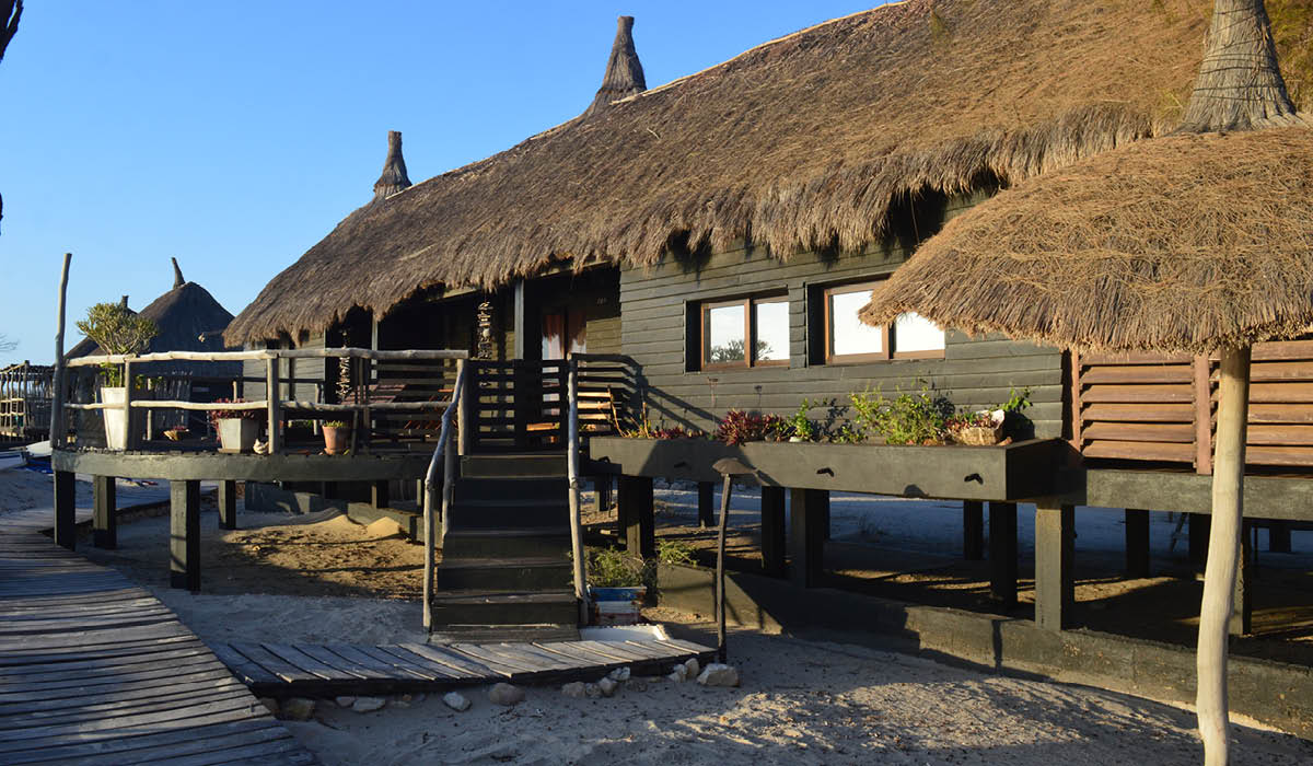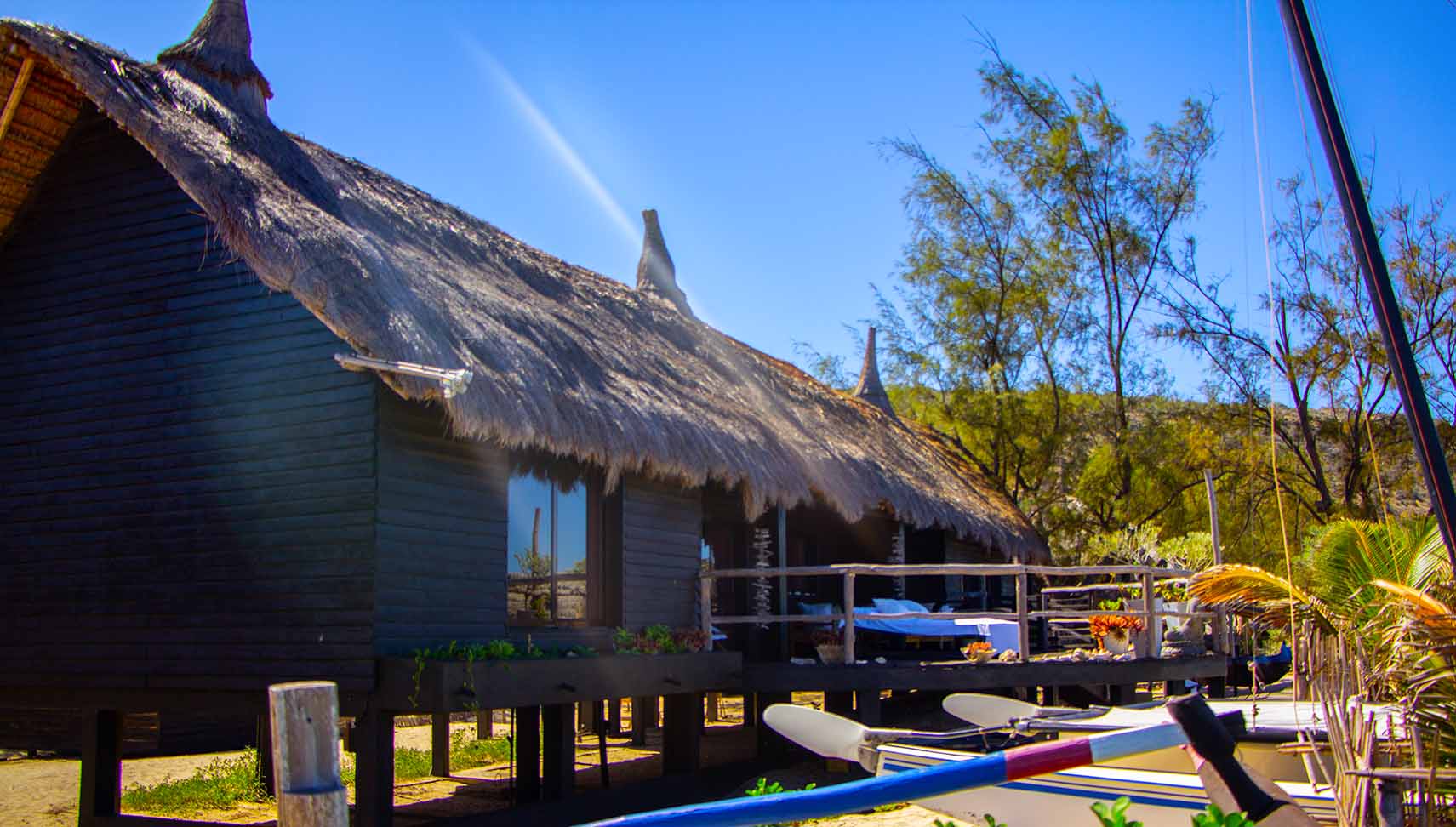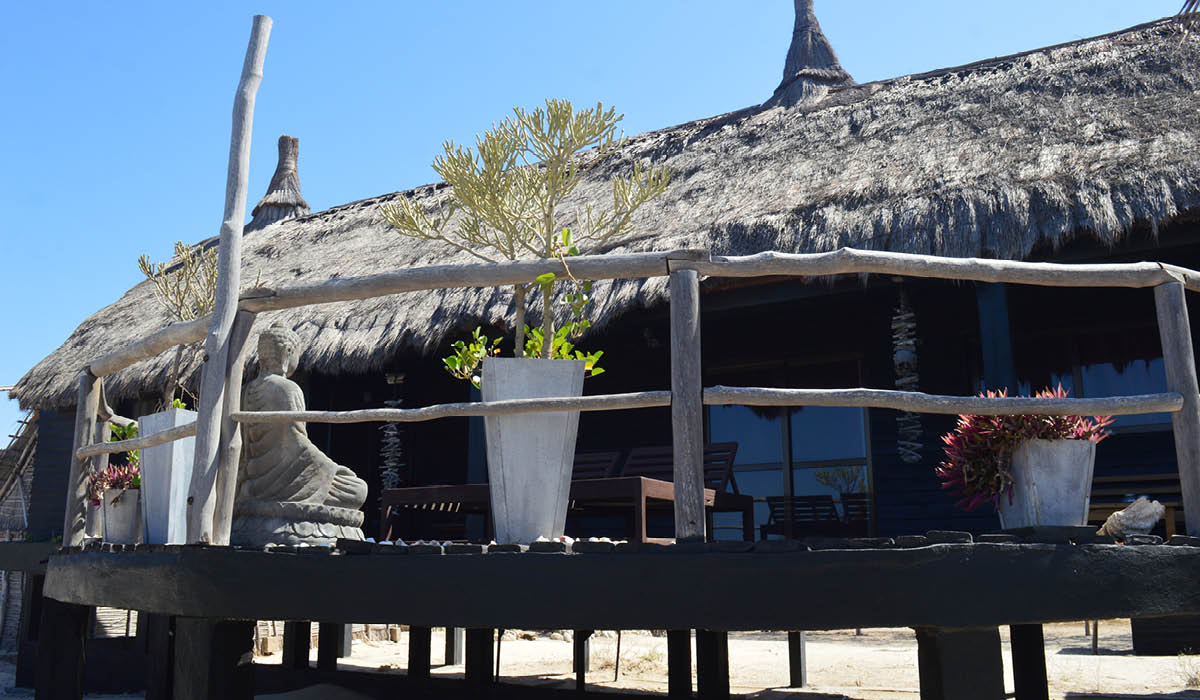 Vaste terrasse avec salon extérieur avec vue sur le lagon